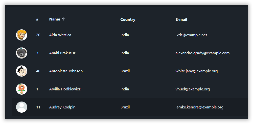 Давайте обновим свойство $headers, заменив столбец age на country.name: